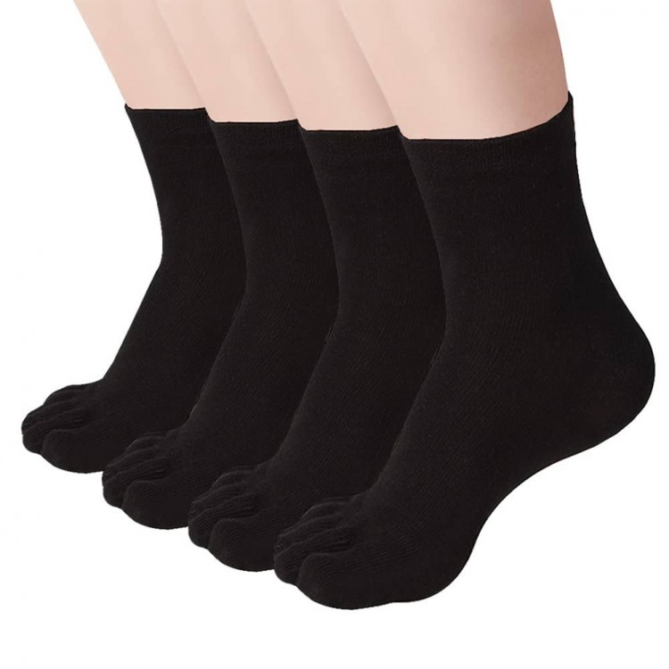 Women's Toe socks Cotton Crew Five Finger Socks For Running Athletic 4 Pack By Meaiguo(Women A1-4 Black)