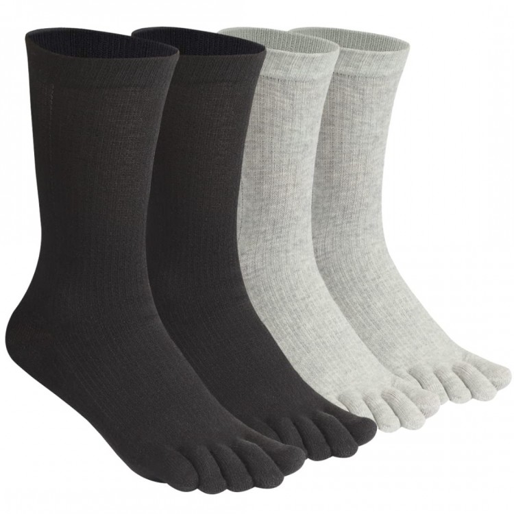 Women's Toe socks Cotton Crew Five Finger Socks For Running Athletic 4 Pack (Women D2-Black&Grey)