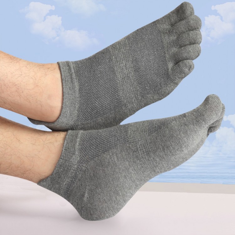 Men's Toe Socks Cotton Five Finger Socks Low Cut Athletic Socks for Running 4 Pairs(Mesh 3-Grey)