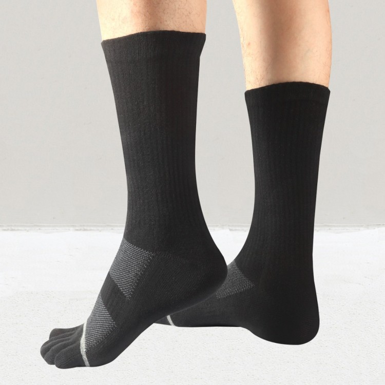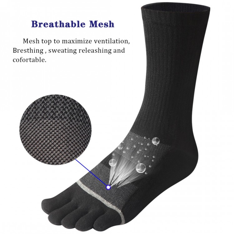 Men's Toe socks Cotton Crew Five Finger Socks Hiking Socks for Running 3 Pairs(Long Mesh Black)