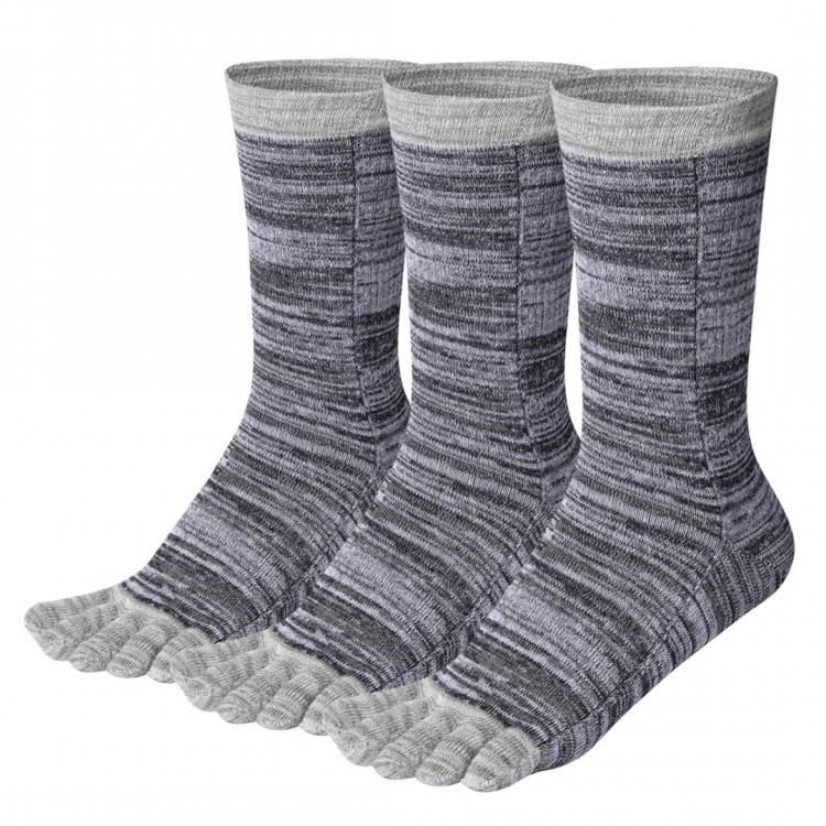 Meaiguo Toe Socks Running Five Finger Crew Cotton for Men Women 3 Pairs (Men Long Pinse Grey/3Pairs)